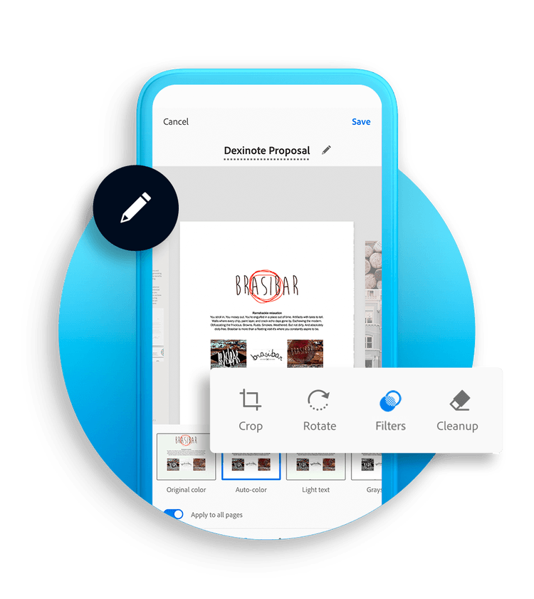 • Smart cropping, perspective correction, and color cleanup make every scan look professional.
