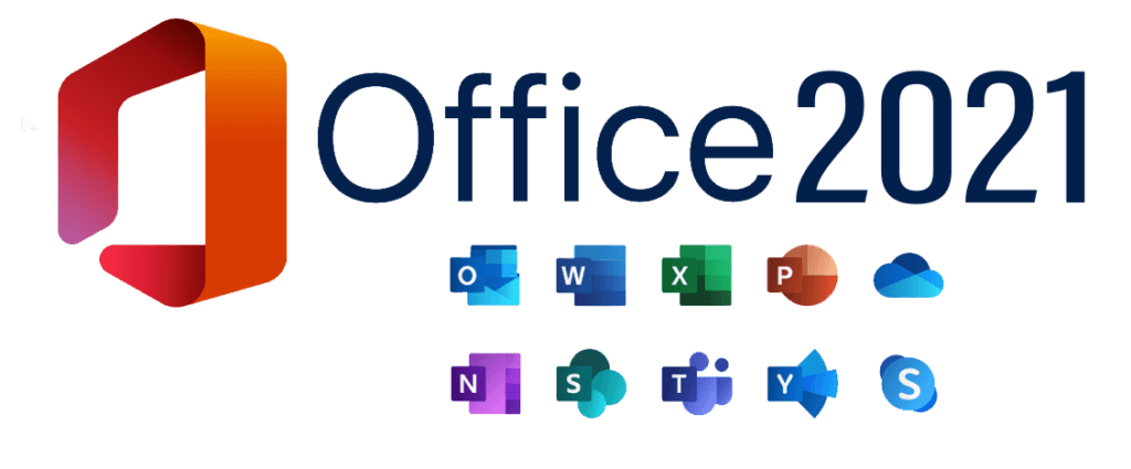 Office Professional Plus 2021 includes Access, Excel, OneNote, Outlook, PowerPoint, Publisher, Word, and Skype for Business.