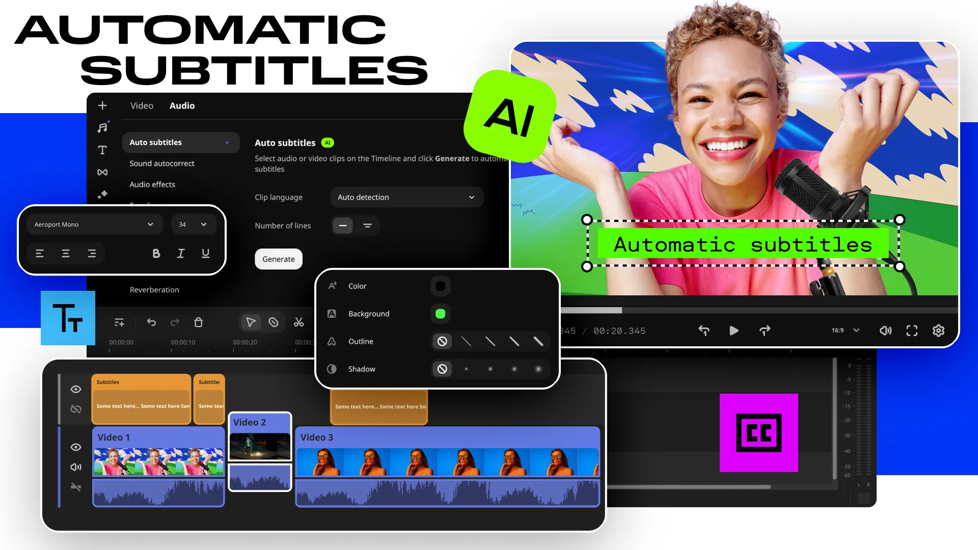 Audio Editing Made Simple: Clean up background noise, adjust sound levels, and sync audio effortlessly.